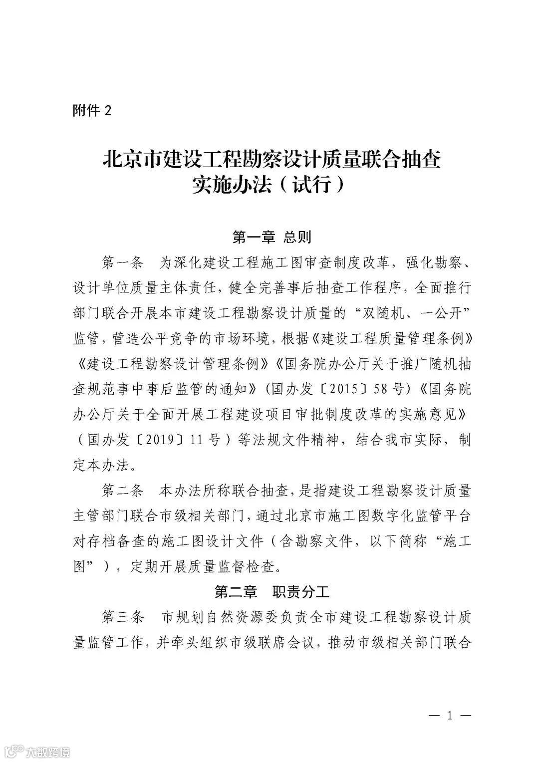 2.《北京市建设工程勘察设计质量联合抽查实施办法(试行)》