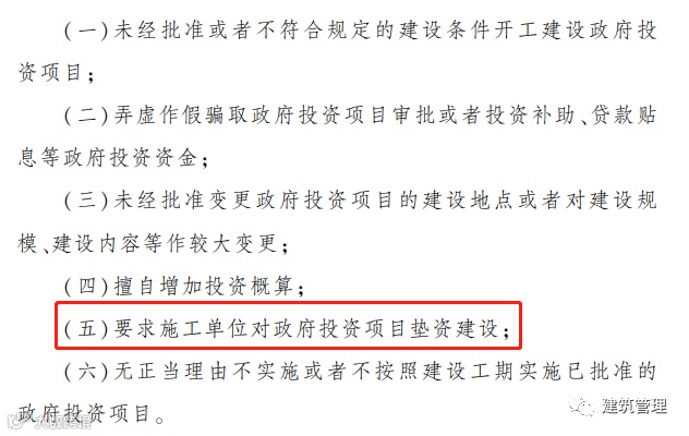 (五)要求施工单位对政府投资项目垫资建设;