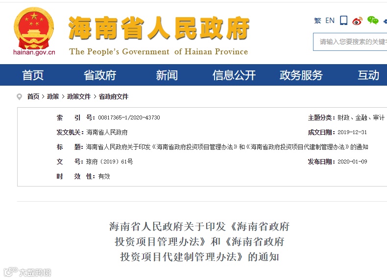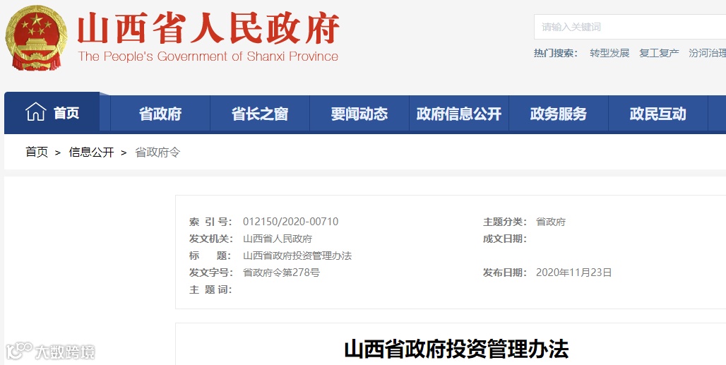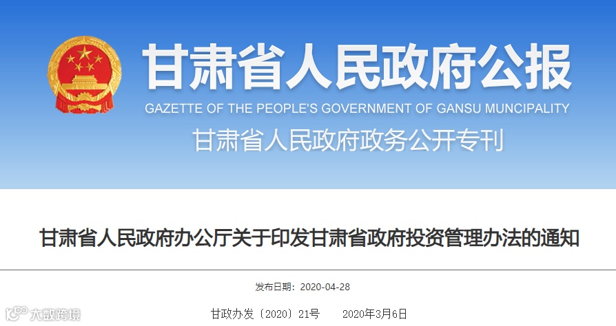 2020年3月6日,甘肃印发《甘肃省政府投资管理办法》本办法自印发之日起施行,有效期5年。