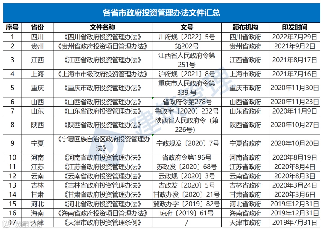 2020年10月20日,宁夏印发《宁夏回族自治区政府投资管理办法》,自2020年12月1日起施行。