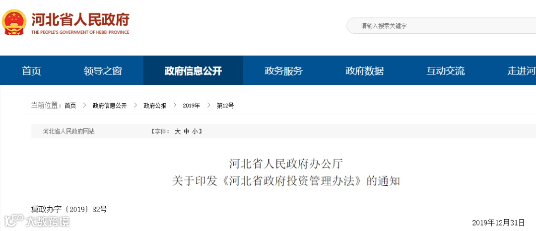 《河北省政府投资管理办法》已经2019年12月29日省政府第74次常务会议审议通过,自2020年3月1日起施行。