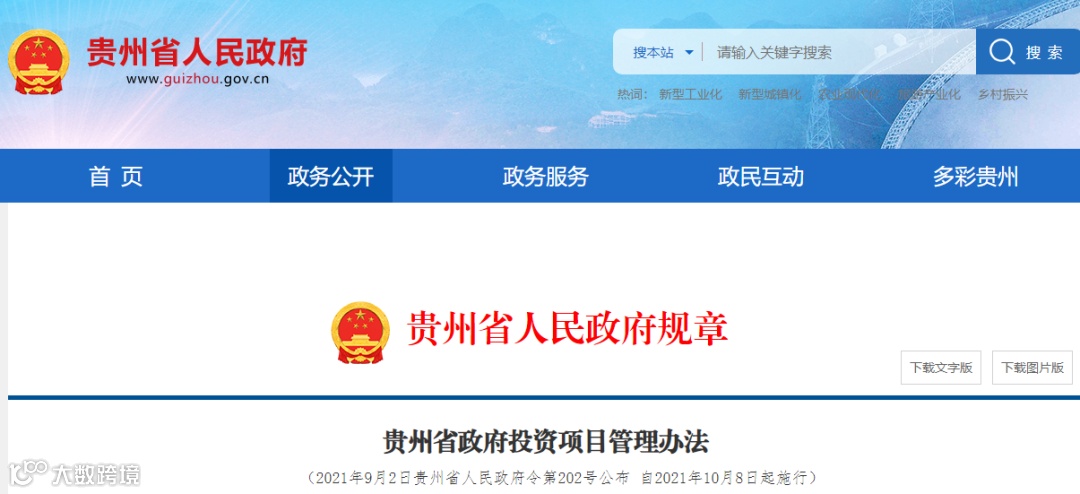 贵州省政府印发《贵州省政府投资项目管理办法》 ,自2021年10月8日起施行,与四川省类似,其处罚措施也很重。