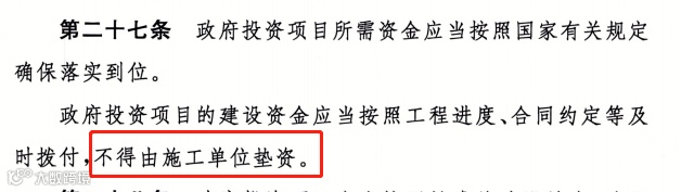 1、禁止“垫资施工”:政府投资项目不得由施工单位垫资建设。