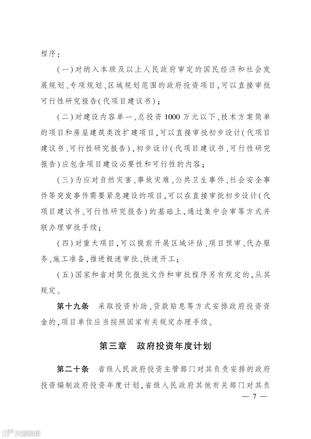 (三)对不符合规定的政府投资项目予以批准;