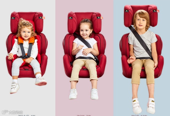 安全座椅大多使用多色设计,且颜色鲜艳,缓冲部分面料与内层面料颜色通常不相同,大多采用撞色设计,也有些会采用儿童喜欢的卡通图案。