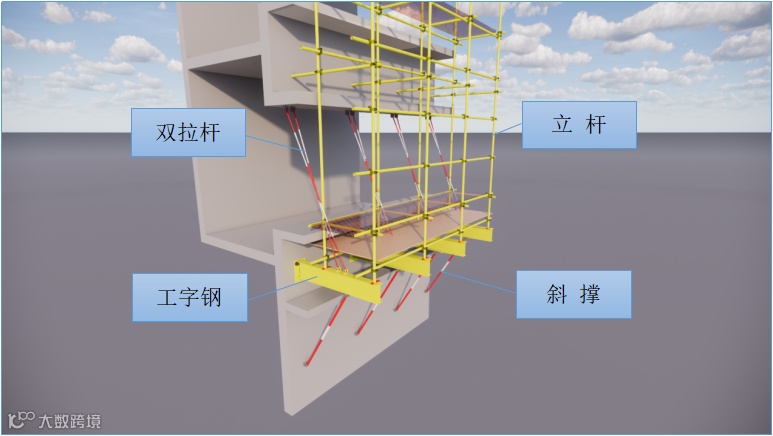 双拉杆:1.8m<悬挑工字钢长度≤2.4m