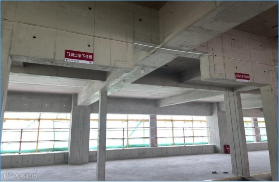 门洞过梁传统施工需后植筋、绑扎钢筋、浇筑混凝土等工艺流程;现通过对门洞下挂板进行深化,采用铝模一次浇筑成型施工工艺。