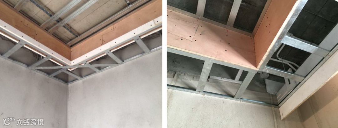 其余转角位及天花高位大面均保留轻钢龙骨完成面,不封板。