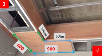 03、石膏板安装前,须核对灯孔与龙骨的位置,严禁灯孔与主、次龙骨位置重叠。