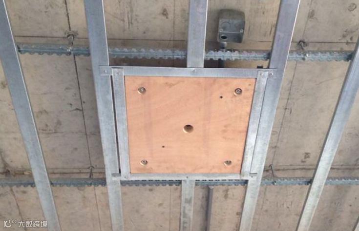 需安装轻型吊灯的部位,应预设 400mm x400mm 双层18厘多层板,板面与龙骨面齐平(多层板须采用Φ8镀锌吊杆固定于结构楼板底面,可不与四周吊顶围边龙骨固定连接),吊灯重量不宜超过30kg。