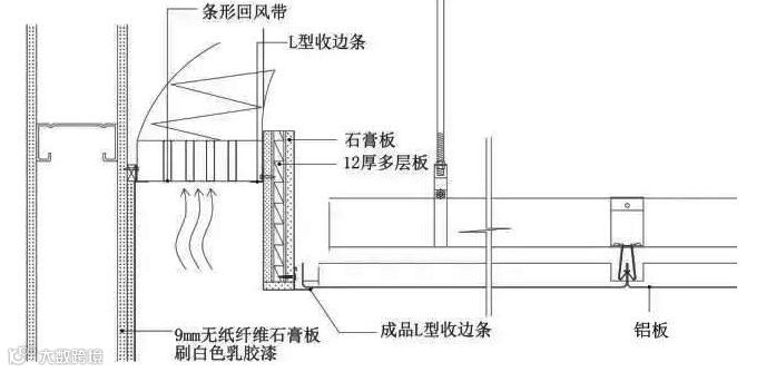 且背部加衬板,所有铆接部位以内需自攻螺丝满加固,灯槽内必须用石膏板封平。