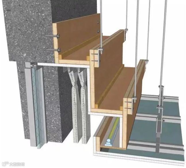 侧挂板高度 200~ 400mm 仍为单燕尾榫;侧挂板高度 400~600mm 设置双燕尾榫;高度≥ 600mm 以上应采用轻钢龙骨基层制作骨架。