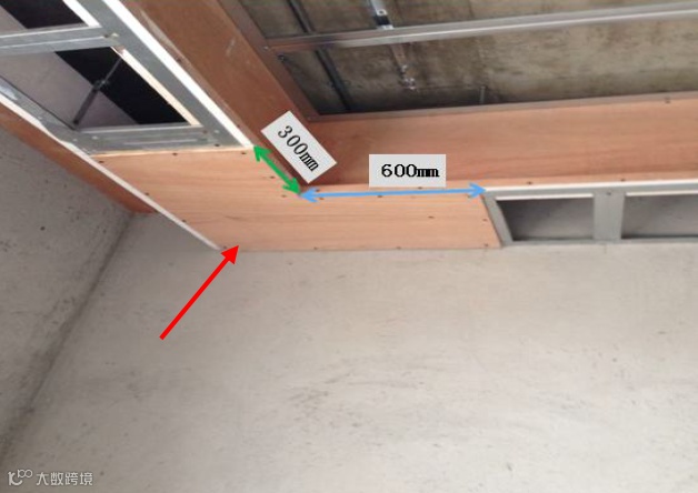 01、吊顶转角部位第一层采用 9mm 多层板,原则上 L 型整板转角内边裁成 300mm*600mm,用自攻螺丝固定,L 角内边长不得小于 300mm。