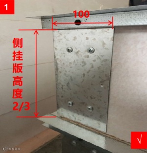 01、侧挂板转角处用自攻螺丝固定 0.8mm 厚镀锌铁片 90 度包角加固。