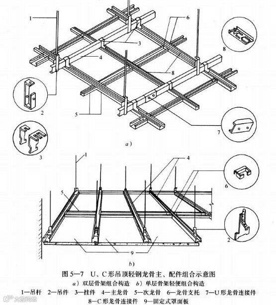 ■ 按其他用途及安装部位分为:承载龙骨、覆面龙骨、边龙骨等。