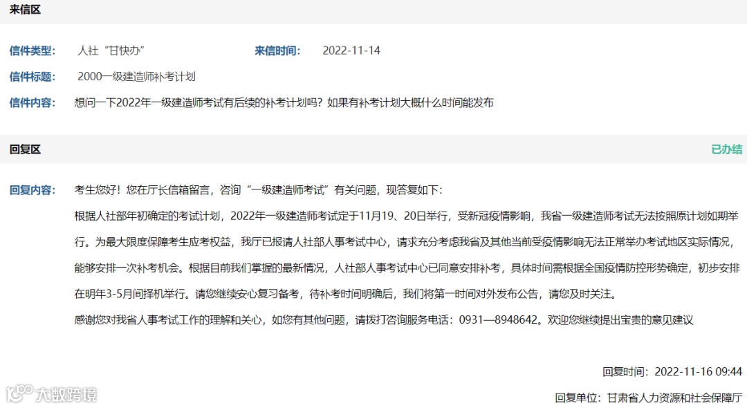 今年停考的地区真的是不少,但就在今天甘肃人社厅传出消息:一建补考初步安排在明年3-5月间择机举行。
