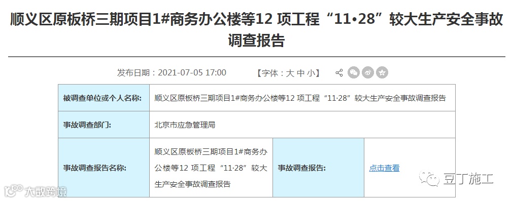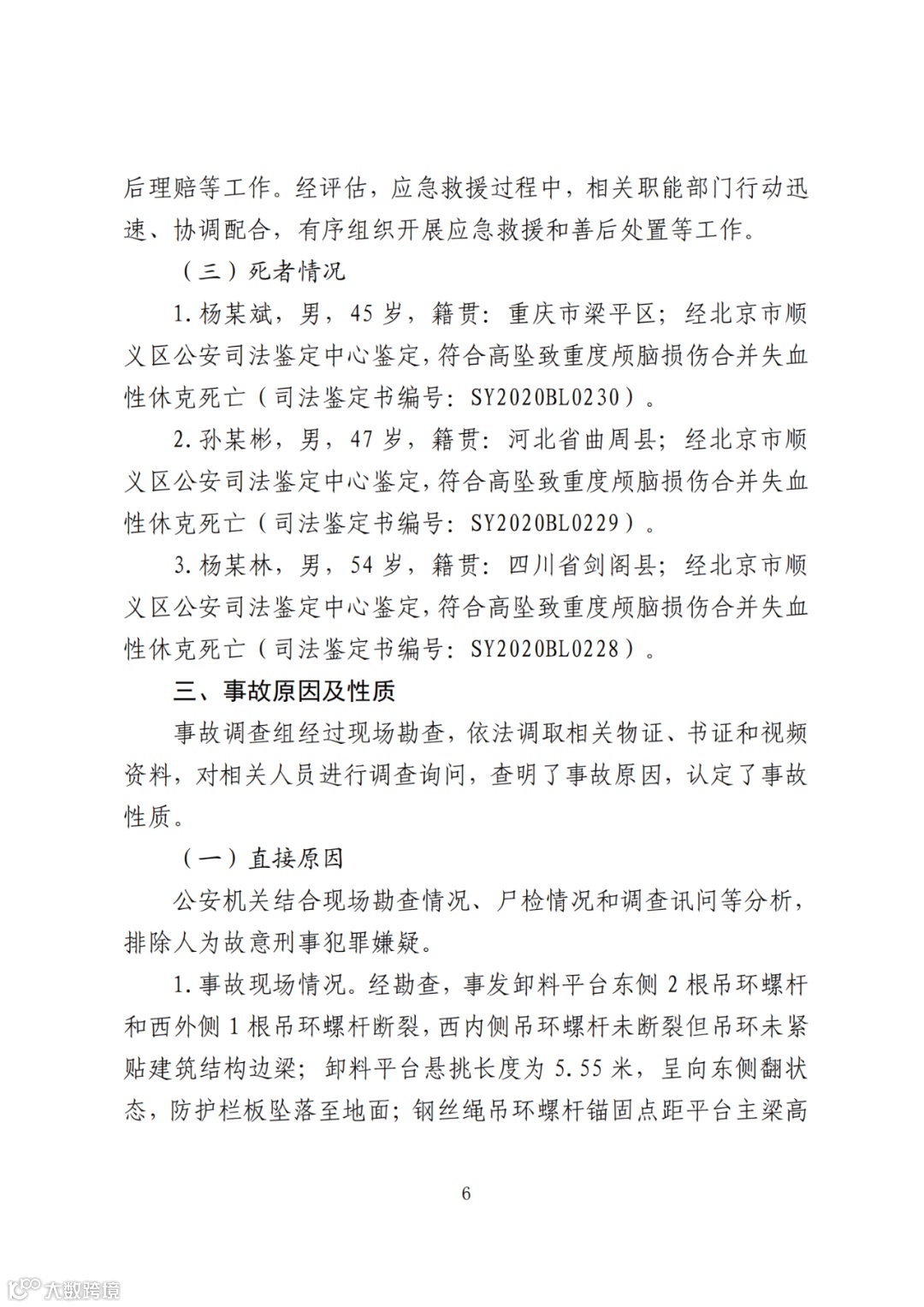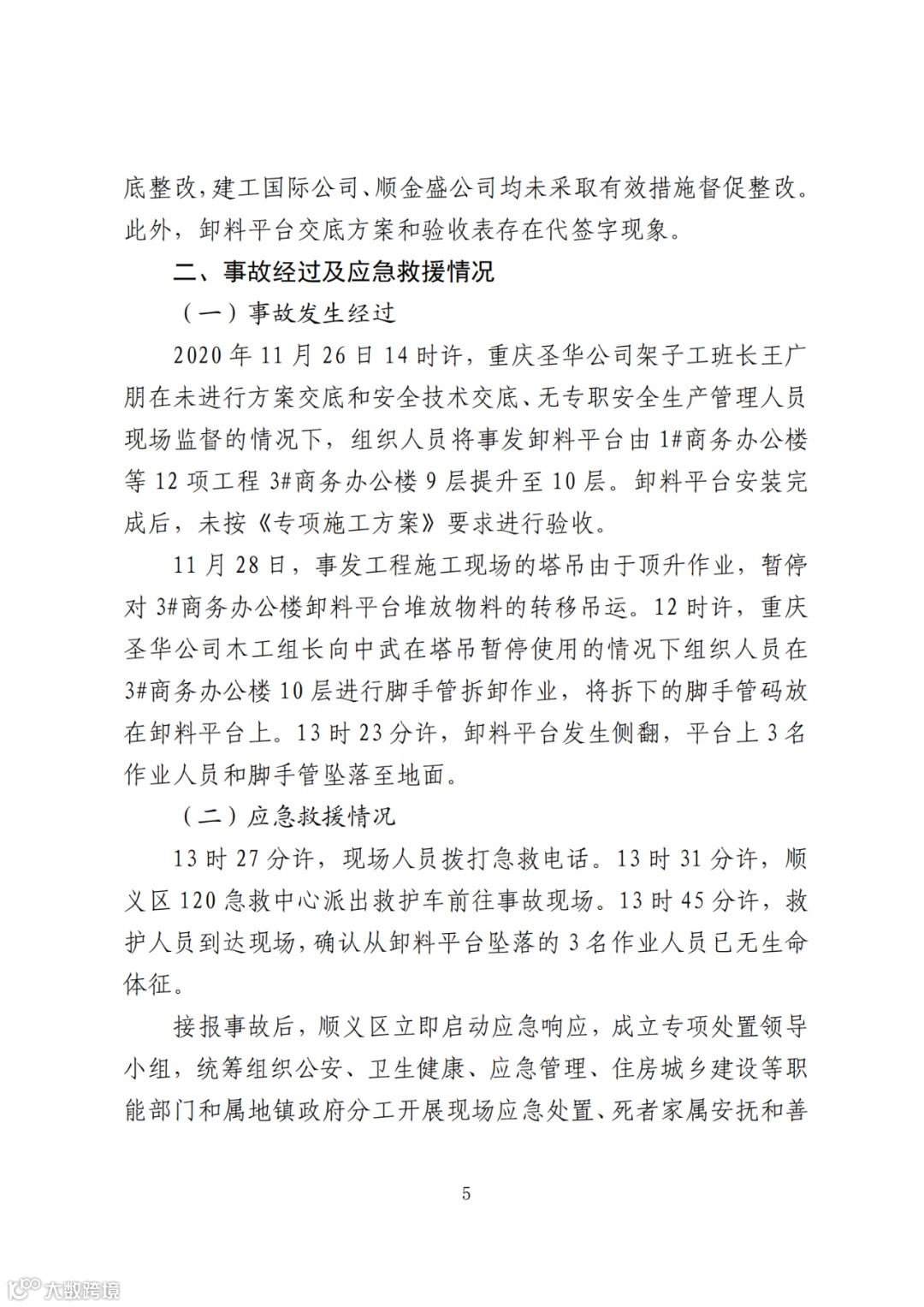 2020年11月28日13时23分许,位于顺义区赵全营镇的原板桥三期项目1#商务办公楼等12项工程施工现场,3#商务办公楼10层北侧卸料平台发生侧翻,造成3人死亡,直接经济损失482.76万元。