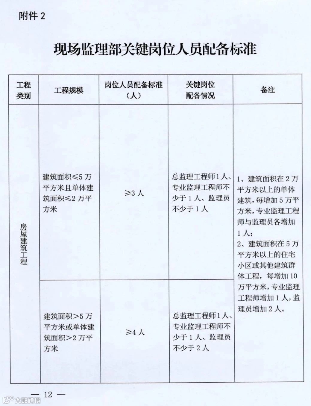 注:1.此标准为关键岗位人员最低配备标准,可根据项目实际需要,由建设单位和监理单位协商确定。