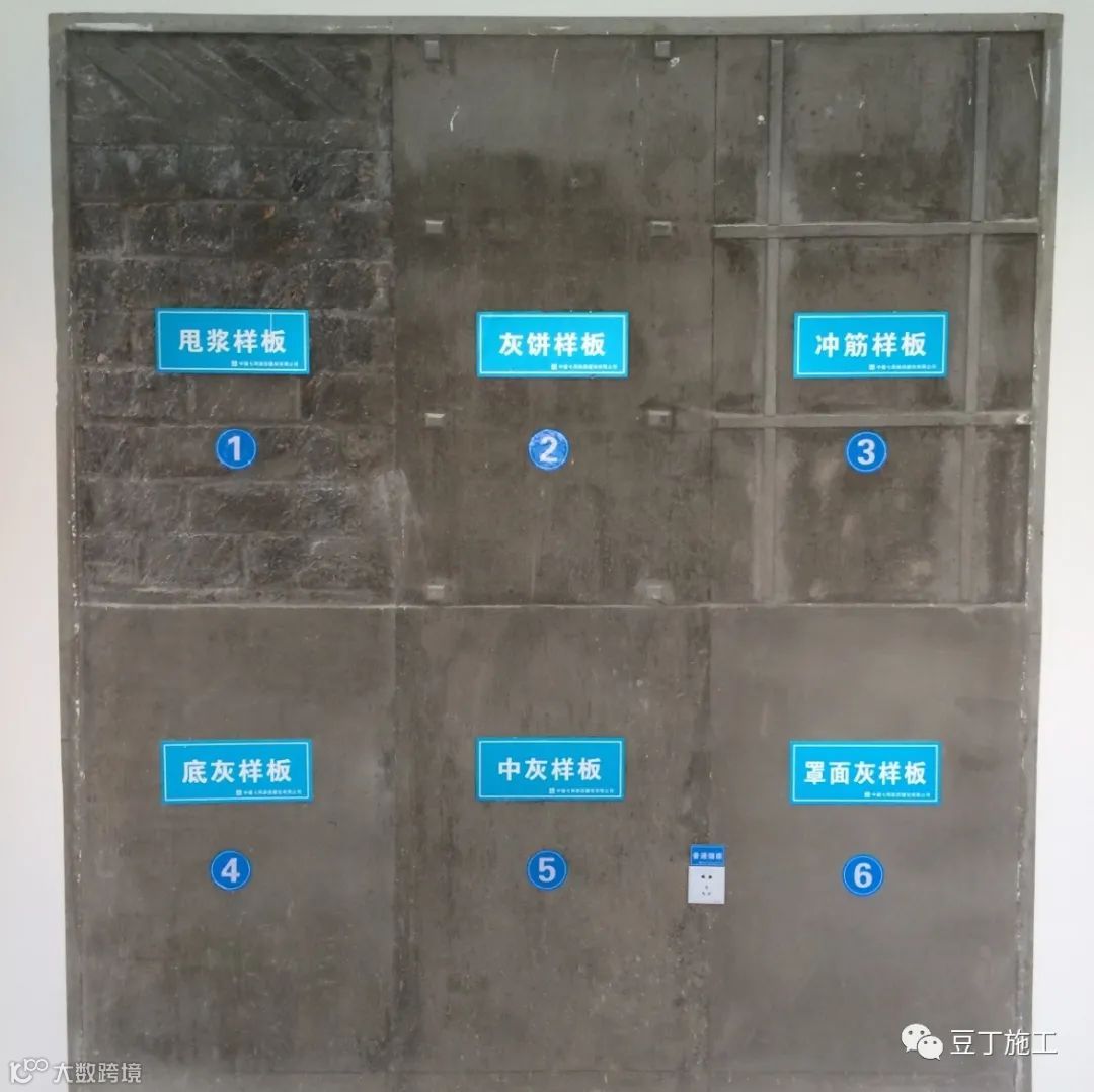 外墙装饰、沉降观测点及水泵房基座施工样板。