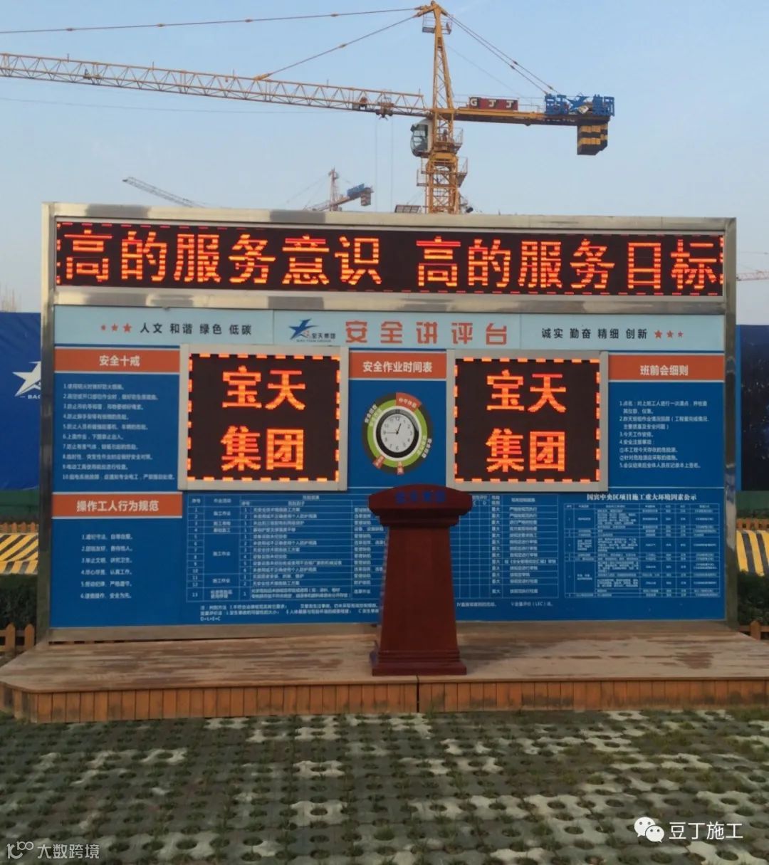 岗前讲评台样式新颖,LED屏布设美观大气。