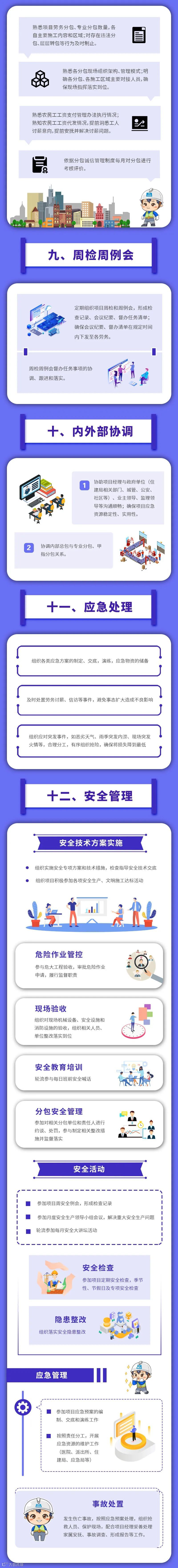 项目部各岗位工作该怎么干?中建三局二公司为规范项目生产系统岗位管理责任、增强项目员工履职尽责意识、提升项目管理水平,对①项目经理②建造总监③安全总监④质量工程师⑤专业工程师⑥安全工程师六项管理岗位的工作内容与管理职责细化明确,推出《中建三局二公司项目生产系统岗位履职清单》,推荐大家对照学习。