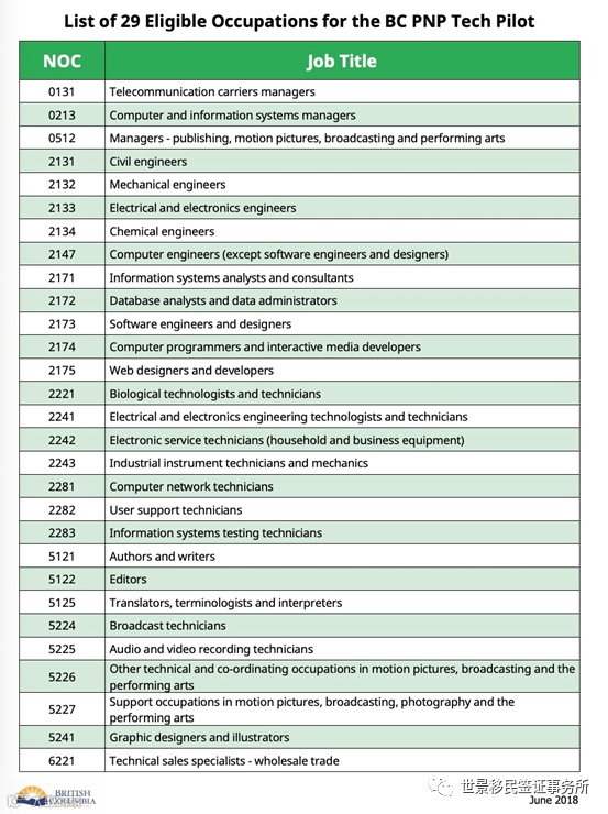 BC PNP目前每周举行一次技术试点抽签,邀请29个符合条件职业的有工作offer的候选人申请该省省提名项目。