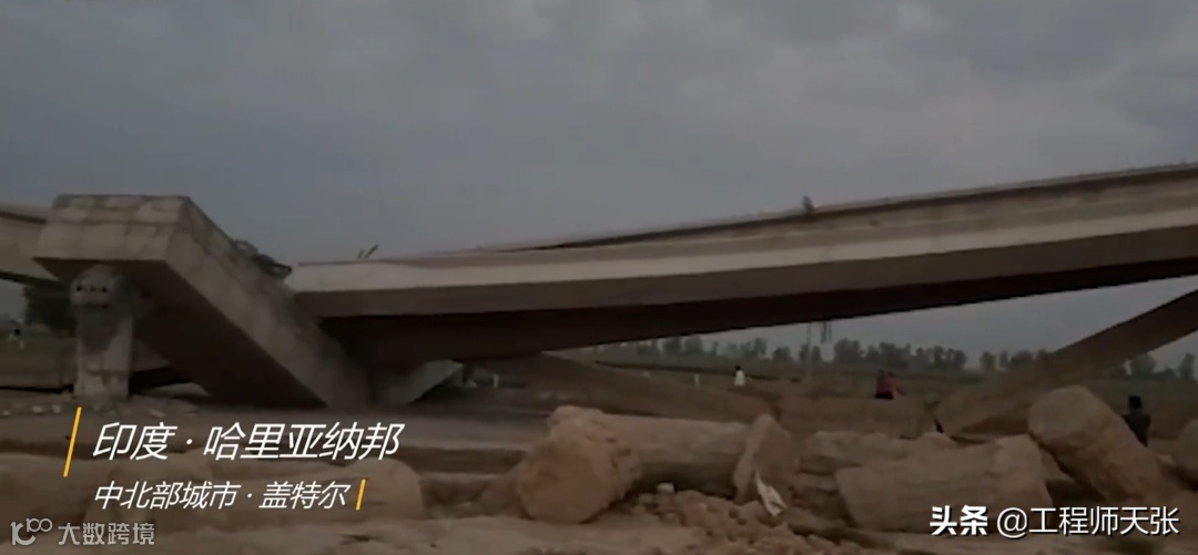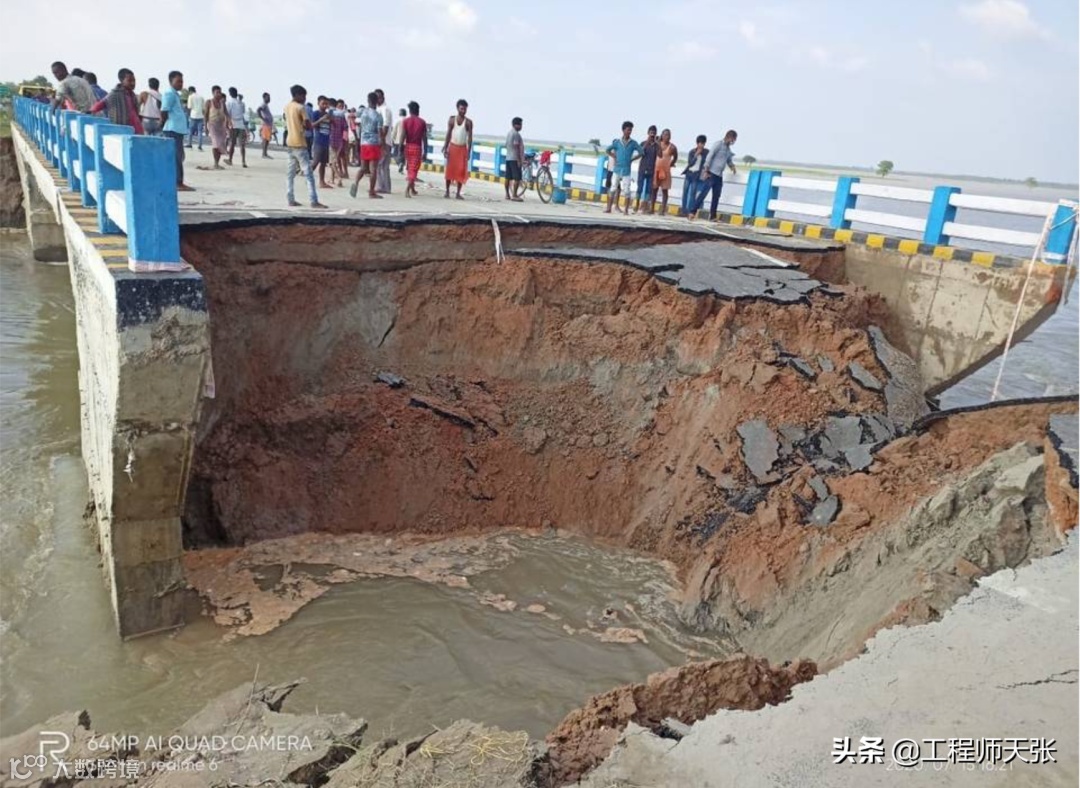 2020年7月15日,还是印度比哈尔邦,一座造价26亿卢比(约合人民币2.4亿)长1140米的大桥,建了8年,刚刚投运29天,受洪水冲刷而坍塌。