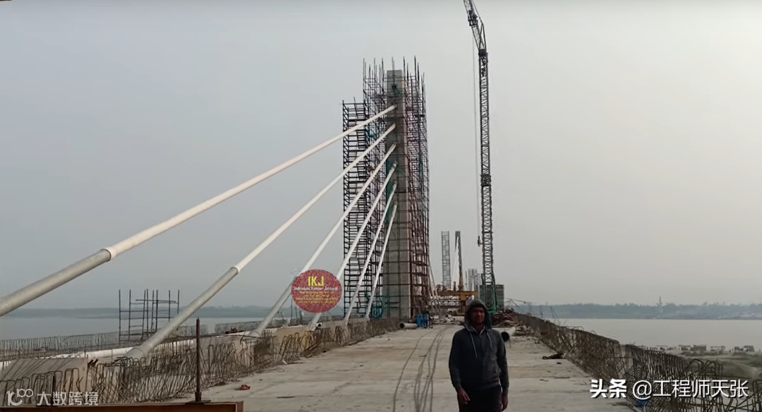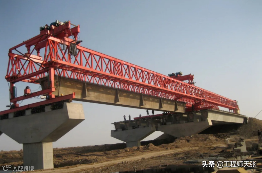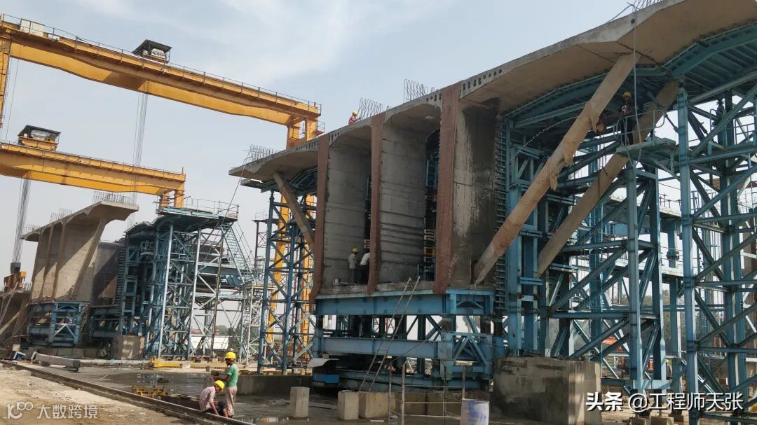 而印度阿-苏大桥并不是这样,他们先在南北两岸梁场,分别预制了小块的梁体(薄薄的),然后再转运到架桥位置去安装。这种单片预制梁的