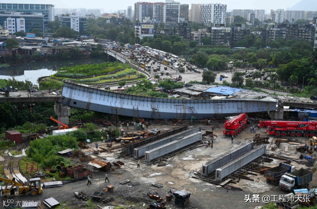2021年2月27日晚,印度哈里亚纳邦盖特尔一座在建高架桥突然倒塌,事后项目主管想用渣土和水泥把破损的桥墩掩埋。