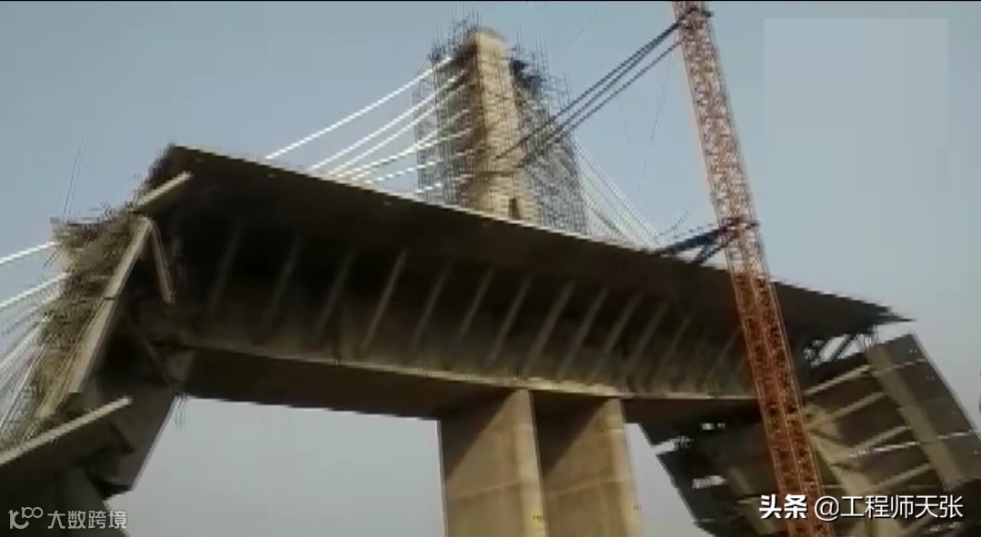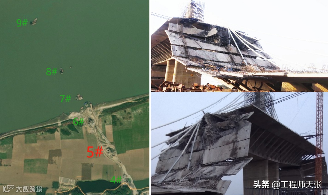 发生垮塌的是位于主桥南侧(苏丹甘吉一侧)的5#桥墩分别向南侧4#和北侧6#桥墩延伸的半跨。