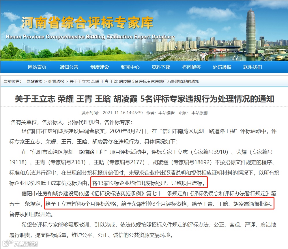 在“信阳市南湾区规划三路道路工程”项目评标活动中,5名评标专家不按招标文件规定的程序、标准和方法进行评审,