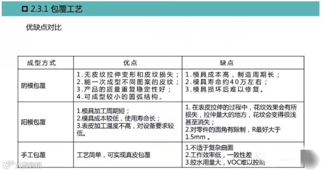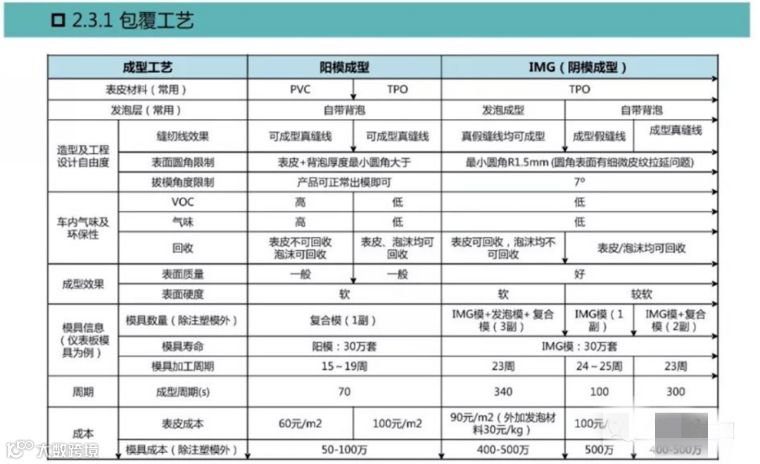 1.根据表面质量要求,对皮纹外观质量要求较高的选择阴模成型