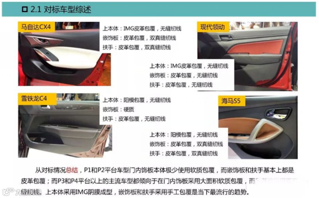 内饰作为消费者视、触、听、闻、用最多的部位,被视为品质提升点的重中之重。而软质包覆和缝线的使用可更够显著提高零部件的产品力,提升用户在视、触、用等方面的感知品质,提高消费者满意度。