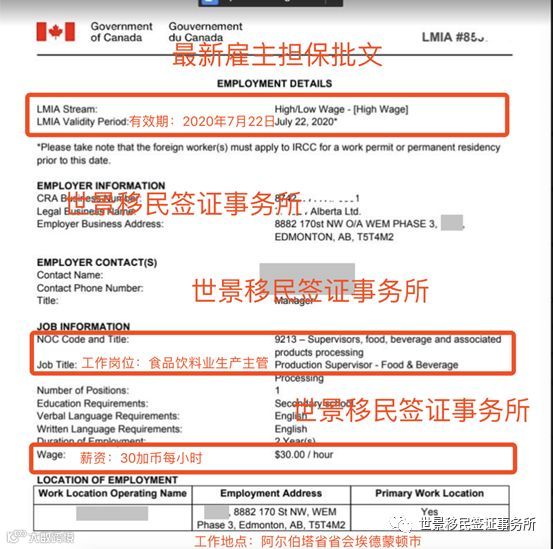雇主LMIA工作批文移民加分项目;