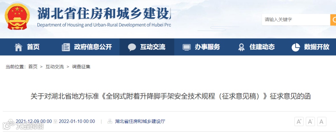 2021年12月9日,湖北省住建厅发布关于对湖北省地方标准《全钢式附着升降脚手架安全技术规程(征求意见稿)》征求意见的函,可以看出是在大力推广全钢附着式升降脚手架的。