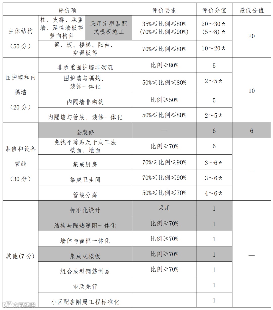 ①全装修不再作为得分项,但装配式建设项目均需达到全装修条件;
