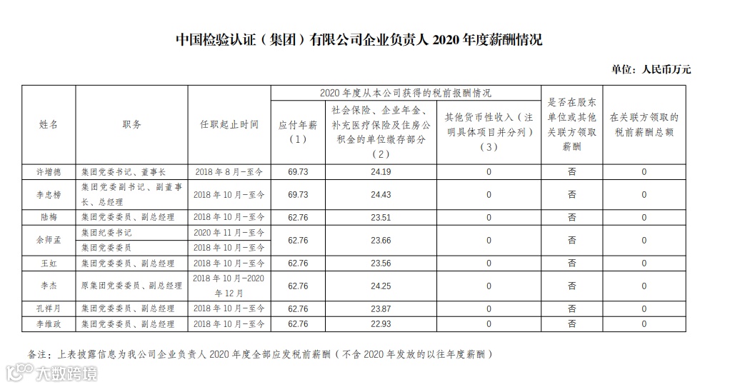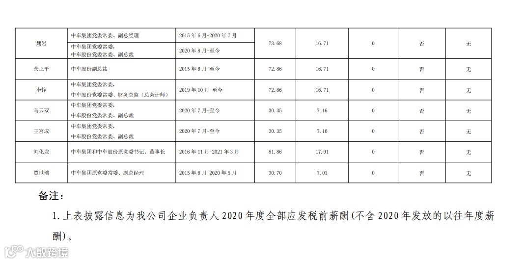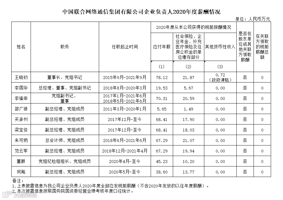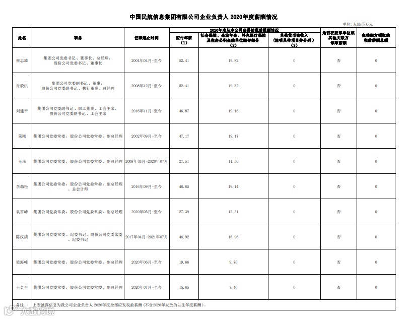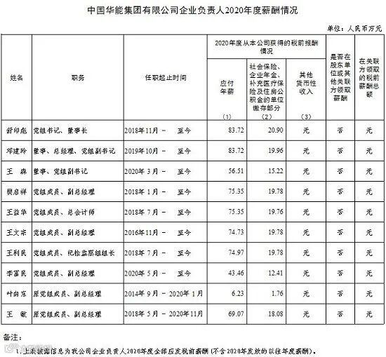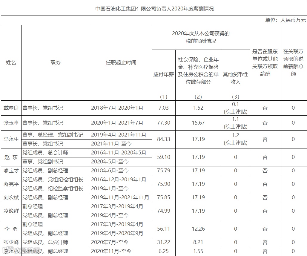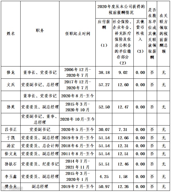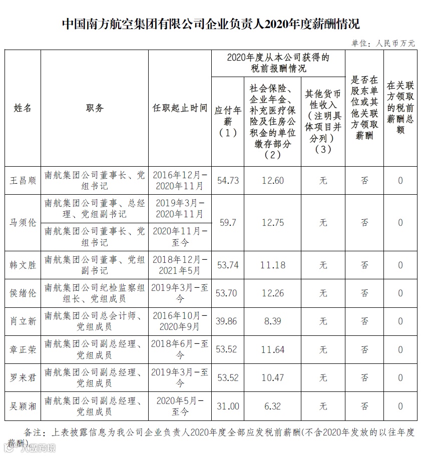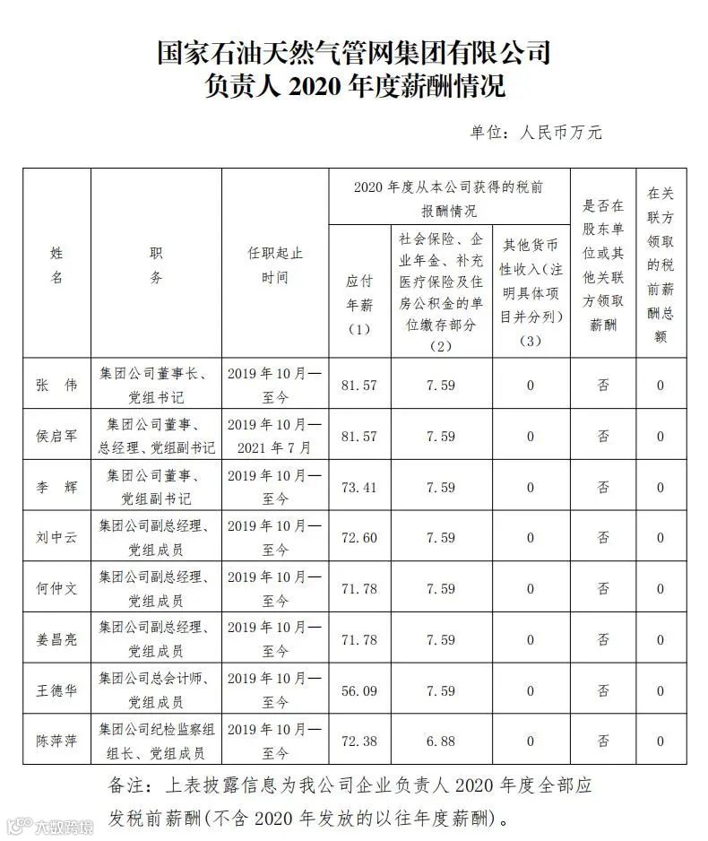 注:如有中央企业一把手在2020年内发生人事变更,该表优先选取2020年内在职时间较长人员。如需了解各中央企业所有负责人2020年度薪酬情况请在下方查看。