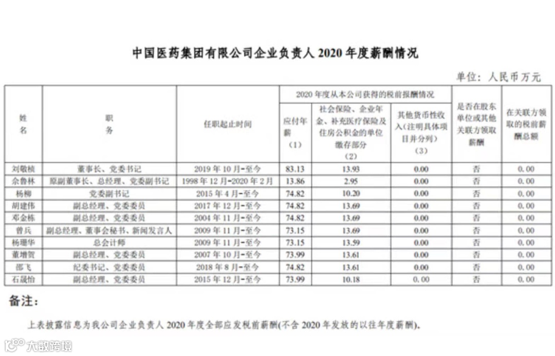 央企一把手的2020年度应付年薪明细,一起来看↓