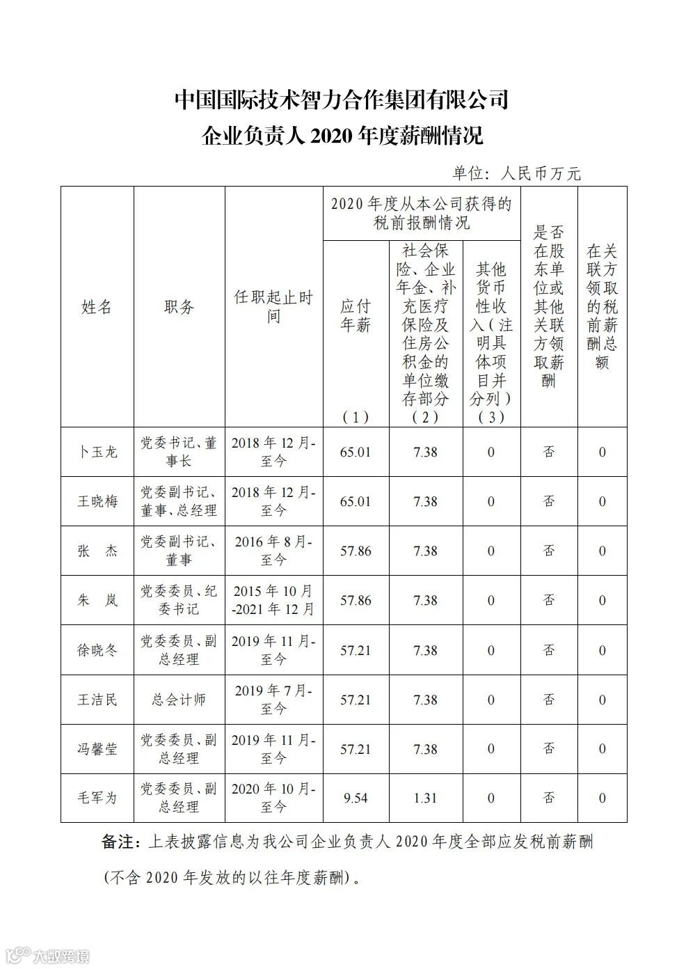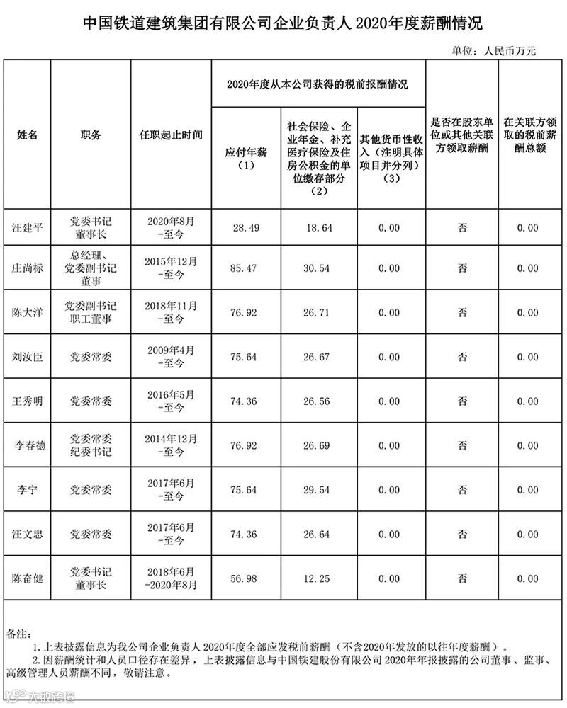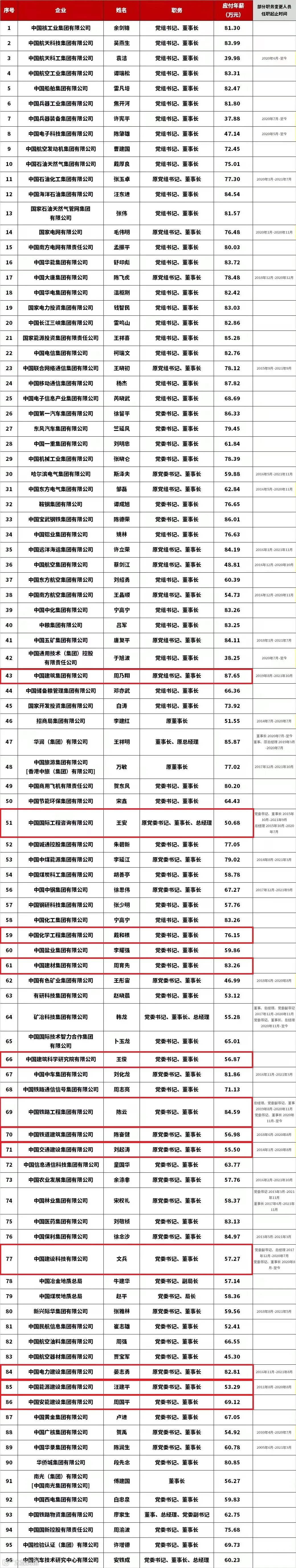 2021年12月31日,国务院国资委网站发布2020年度中央企业负责人薪酬披露。96家央企分别在企业官网公布了负责人年薪收入情况。