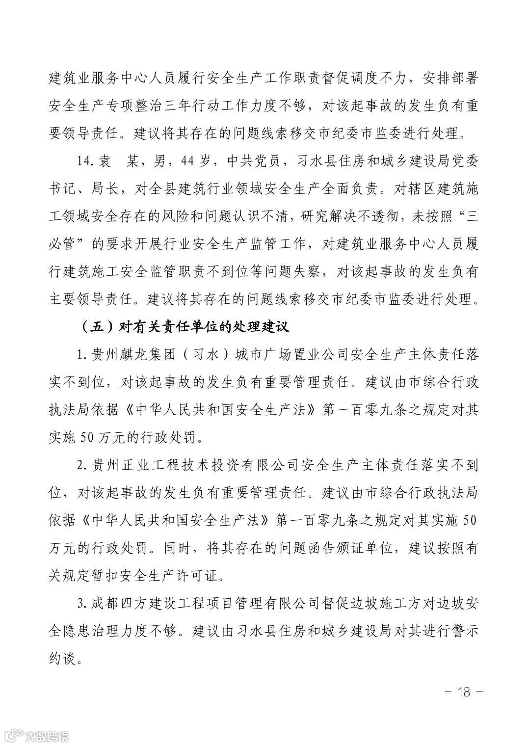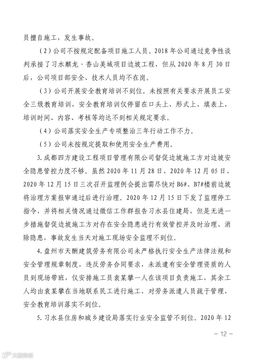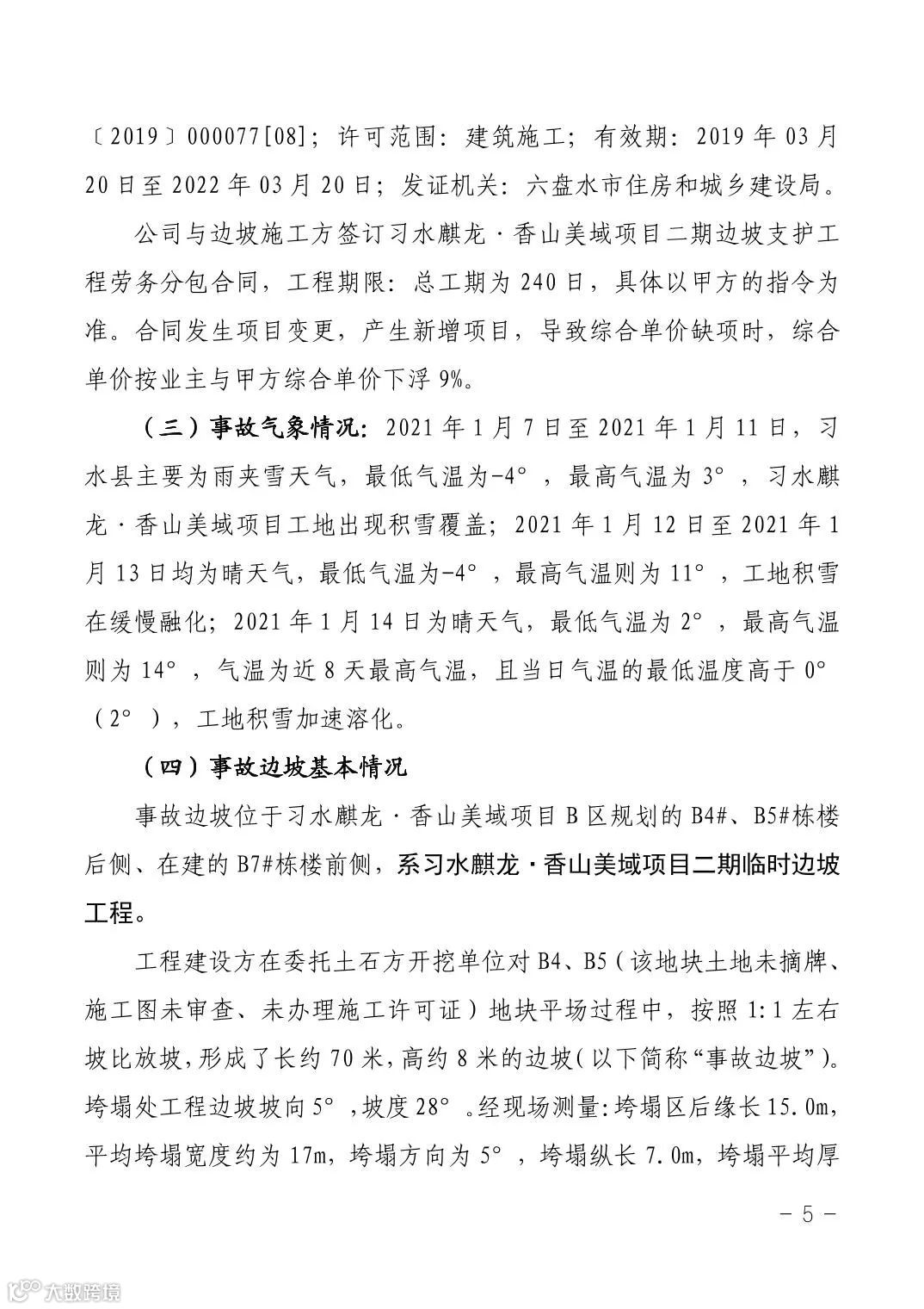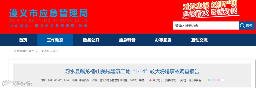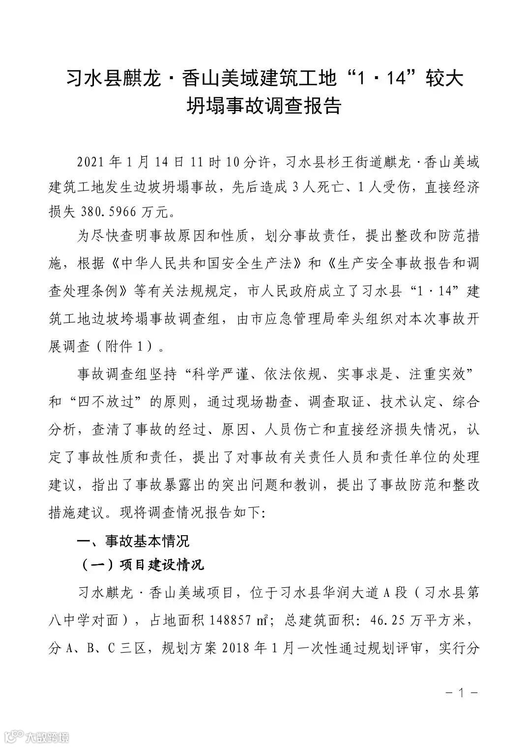 12月17日,遵义市应急管理局公布了《习水县麒龙·香山美域建筑工地“1·14”较大坍塌事故调查报告》。