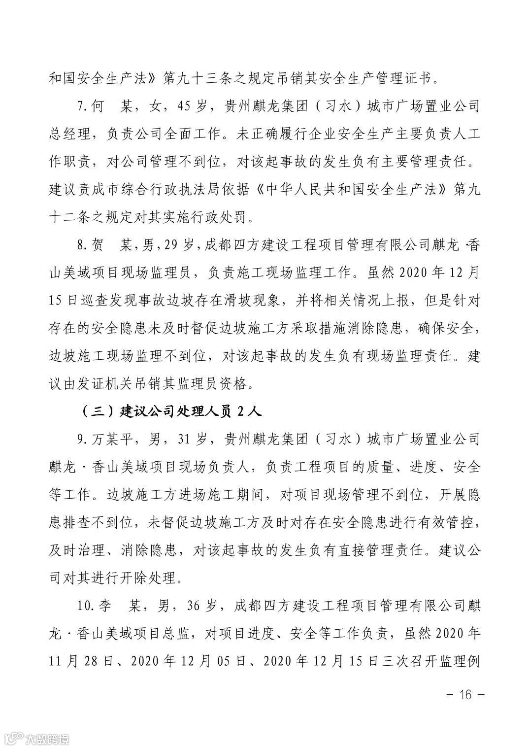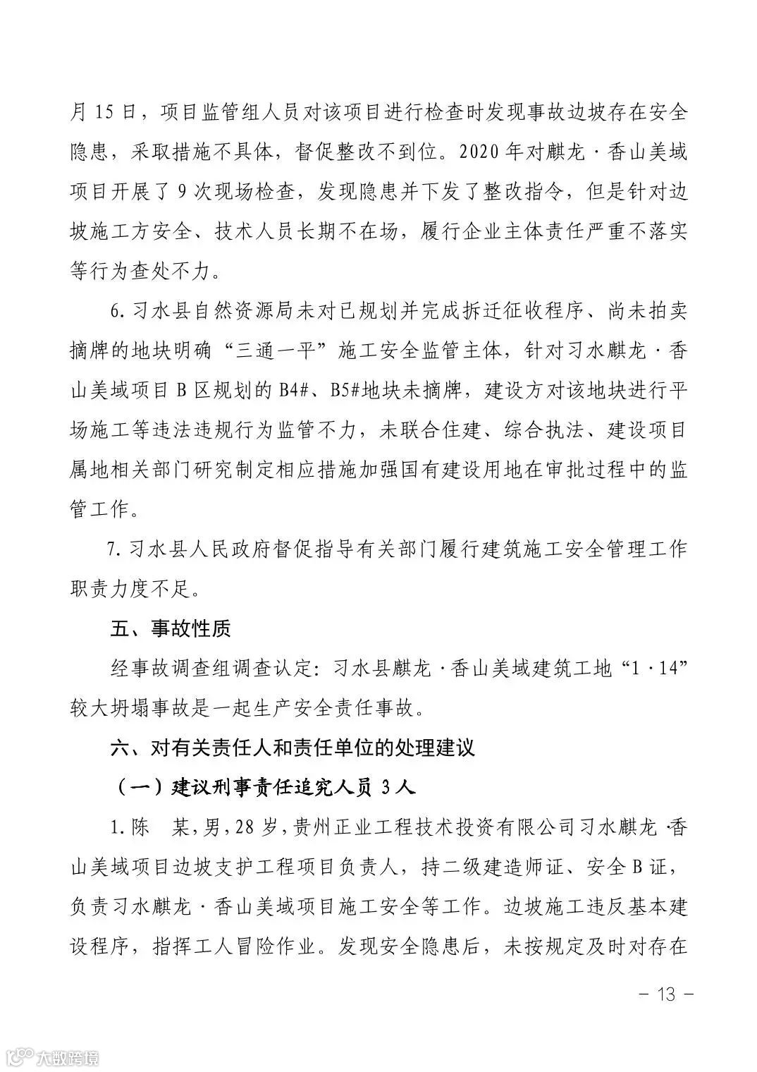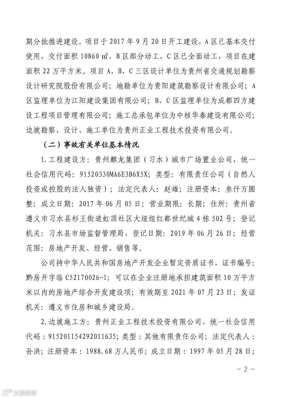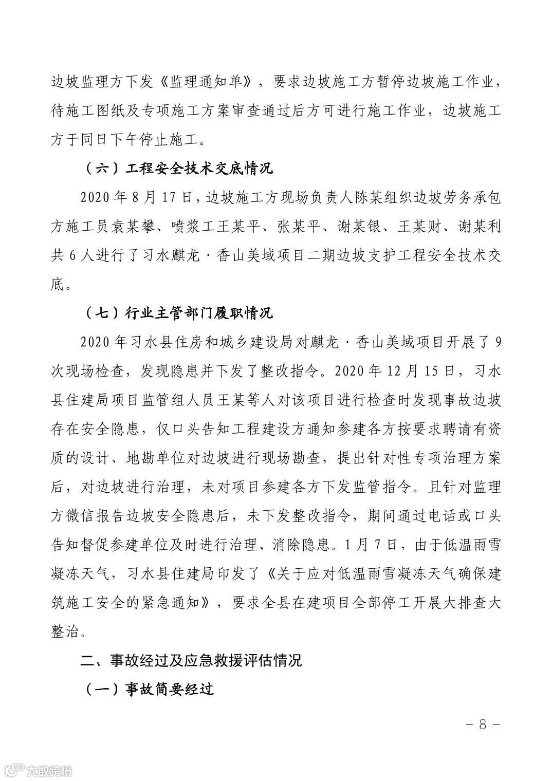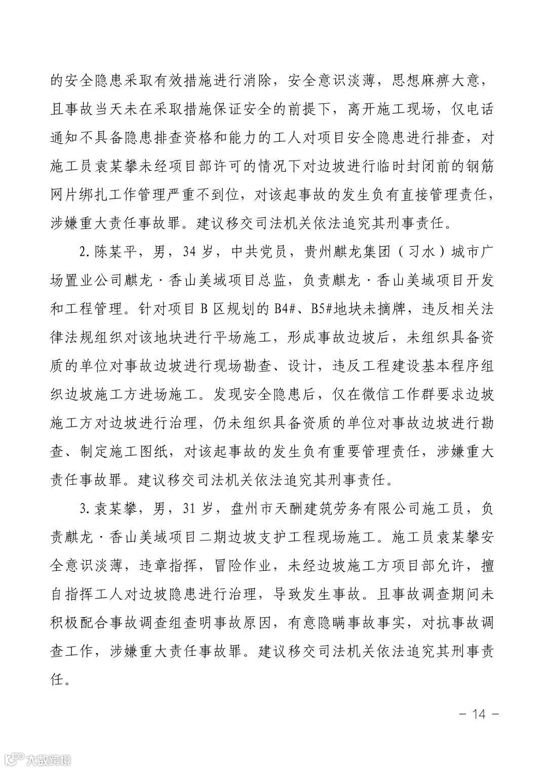 12月17日,遵义市应急管理局公布了《习水县麒龙·香山美域建筑工地“1·14”较大坍塌事故调查报告》。