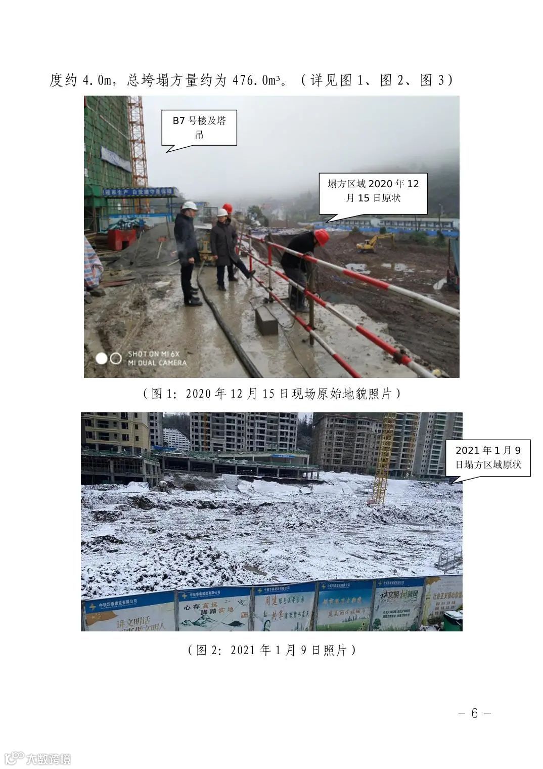 12月27日9时5分,安全监理冯某洋在“18–03地块安全、质量”微信群内发布照片和文字信息“这个边坡上下7、8米高,下面的人在施工,有什么保证措施吗,一直在说,没人回答吗”。12时41分,又发出“5号楼暂时不挖土,先把临边做一下”的信息。