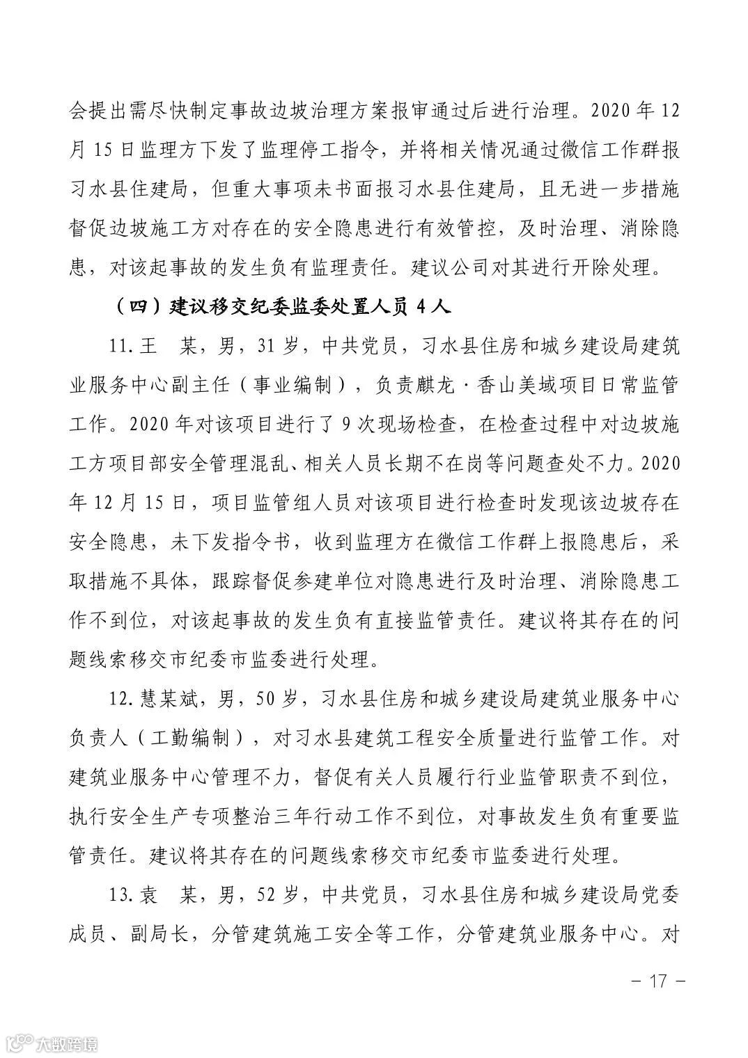 4名公职人员建议移交纪委监委处置。