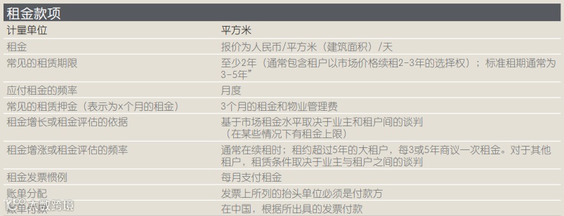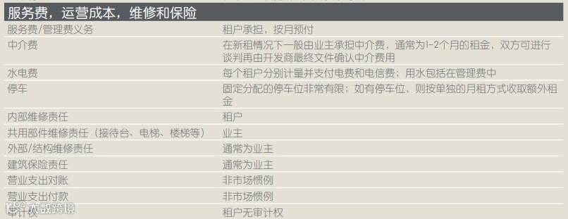 常见的租赁期限:至少2年(通常包含租户以市场价格续租2-3年的选择权);标准租期通常为 3-5年”