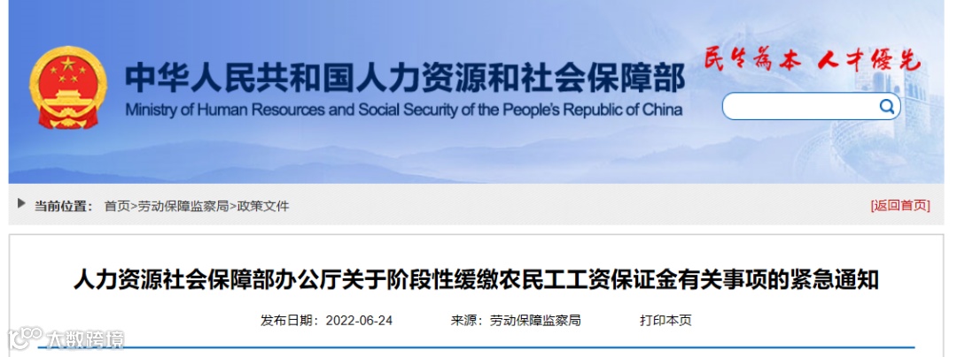 一、施工企业暂缓存储农民工工资保证金,缓缴期限自2022年7月1日起至2022年9月30日止。缓缴期结束后,确需延长缓缴期限的,经本地区根治拖欠农民工工资工作领导小组批准,可作适当延长并报我部备案。