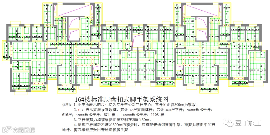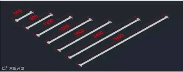 立杆的规格模数一般为500mm,水平杆的规格模数一般为300mm。