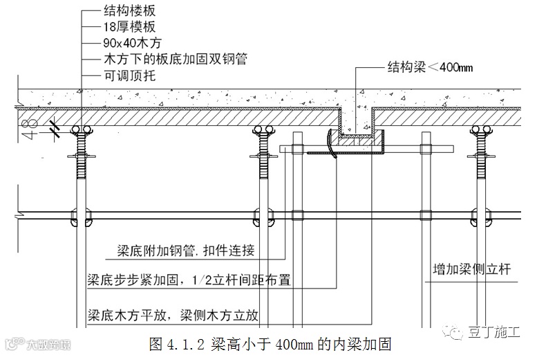 (3)可调托座要求:可调托座的丝杆的外露长度严禁超过400mm,托座插入立杆或双槽钢托梁长度不得小于150mm。
