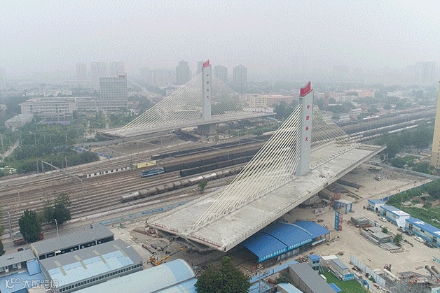 上跨津山铁路斜拉桥创造的转体球铰
