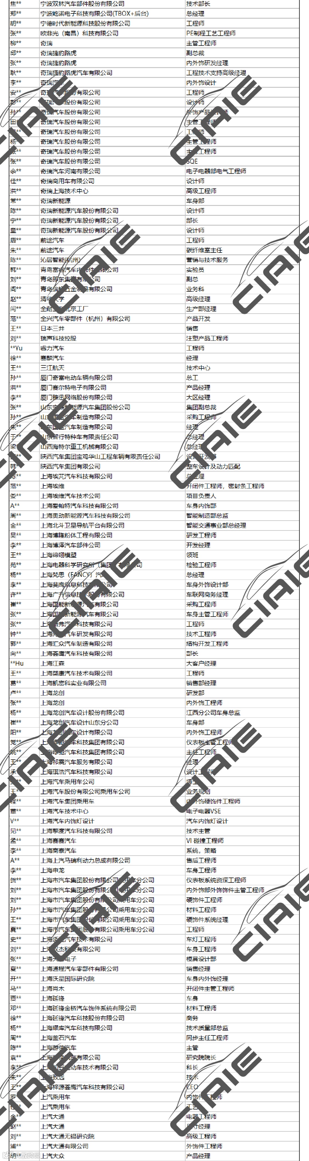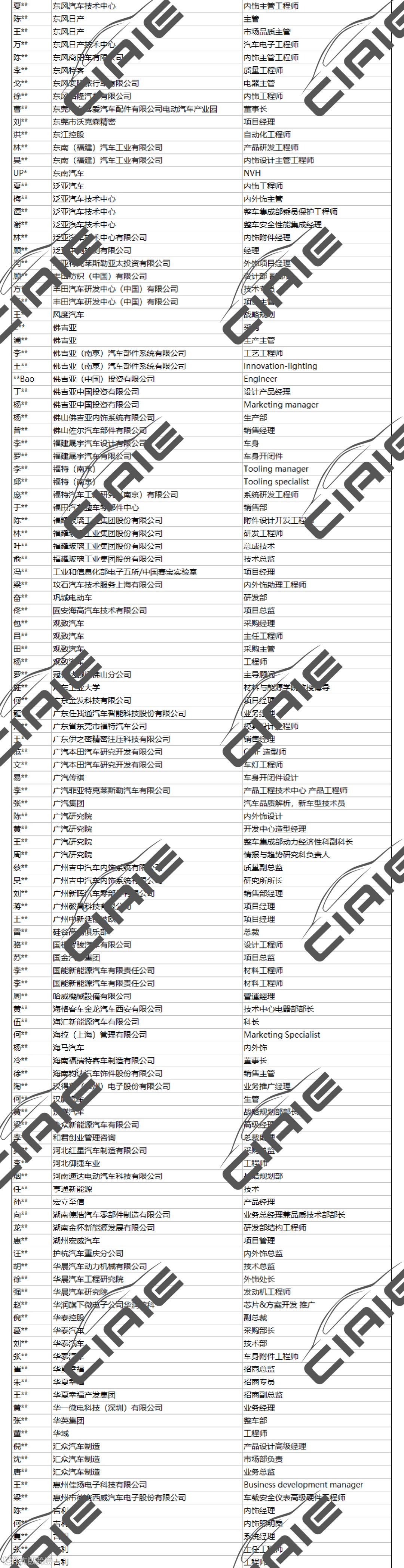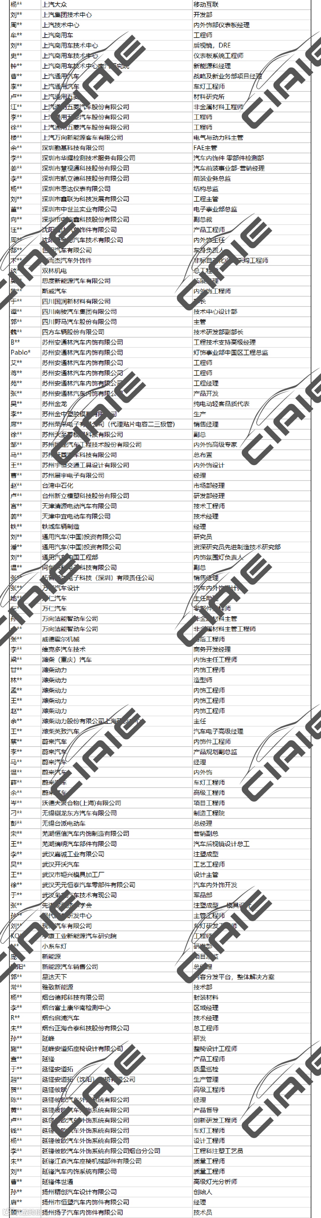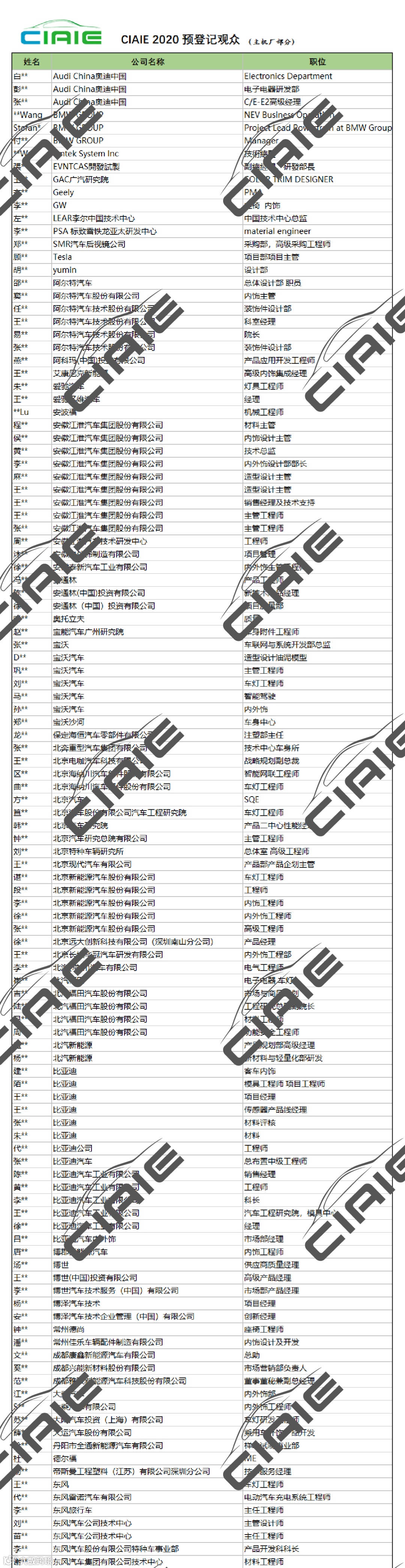 本预登记观众名录是基于可信登记参观CIAIE展览及论坛的公开资料,但均不保证所使用的公开资料的准确性和完整性,也不承担任何投资者因使用本企业名录而产生的任何责任。