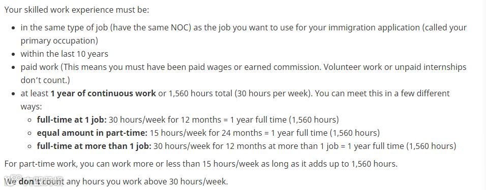 需要注意的是, 每周超过30个小时的工作时间不能计做工作时间(加拿大并不倡导996加班文化)